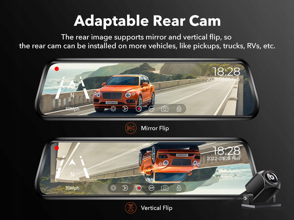 Тип: Відеореєстратор, ПОДВІЙНИЙ ОБ'ЄКТИВ, ФОРМА CAM, записувач даних про події (EDR), камера заднього огляду з дзеркалом