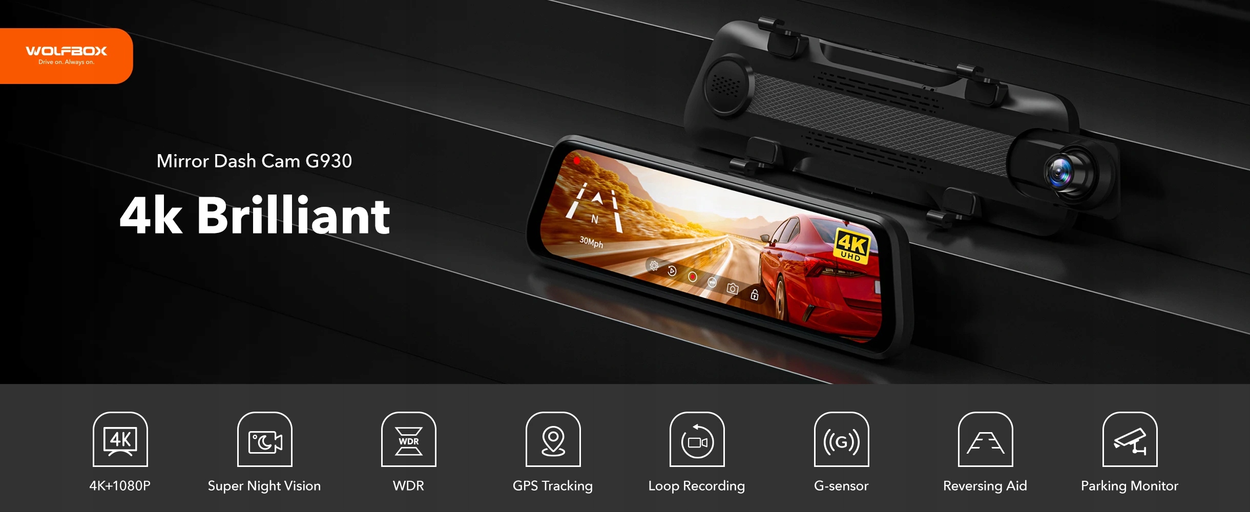 Функція : Водонепроникний, НІЧНЕ БАЧЕННЯ, WDR, G-сенсор, РЕЖИМ паркування, циклічний запис , вбудований GPS, аварійний замок