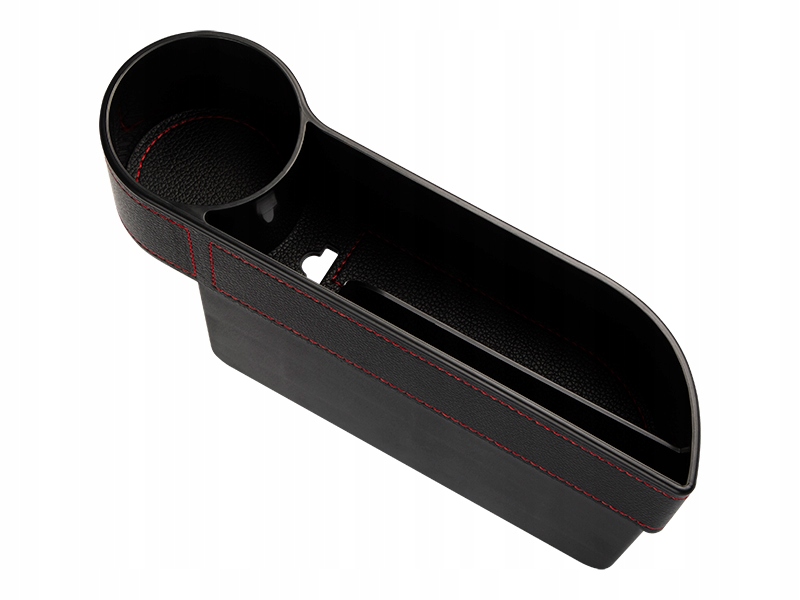 автомобільний відсік для зберігання з прорізами і підсклянником призначений для установки між сидінням водія і коробкою передач. Дуже красива оббивка в чорному кольорі-це впевненість в тому, що продукт вписується в будь-який інтер'єр автомобіля, а червона нитка підкреслює унікальний і сучасний дизайн. У передній частині був встановлений тримач для напоїв (кружка, стакан, банку або пляшка).е>