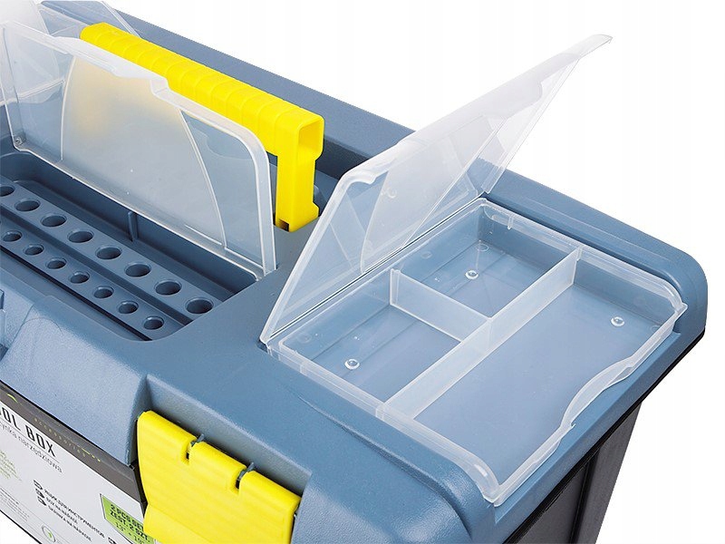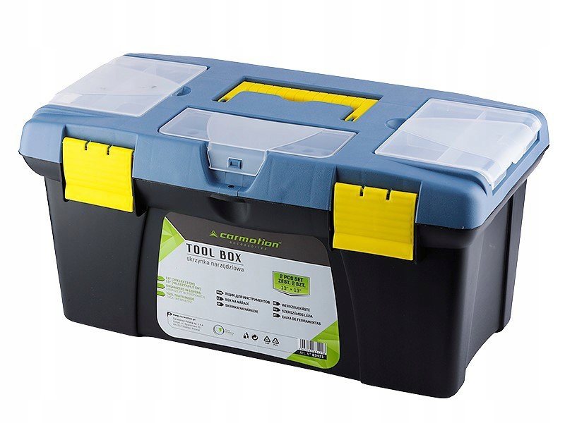 набір з двох професійних ящиків для інструментів. Виготовлений з надзвичайно міцного пластику. Оснащений міцними засувками, знімними органайзерами для гвинтів, цвяхів і гвинтів, а також ящиками для інструментів для великих і маленьких викруток. Можливість закриття ящиків на замок. Всередині лотка для невеликих інструментів.е>