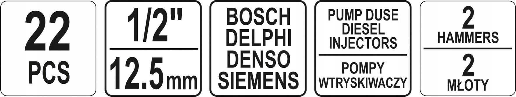 великий набір інерційних знімачів для форсунок Bosch, Delphi, Denso і Siemens, а також для насосних форсунок. Це дозволяє ефективно розбирати форсунки в різних типах дизельних двигунів.е>