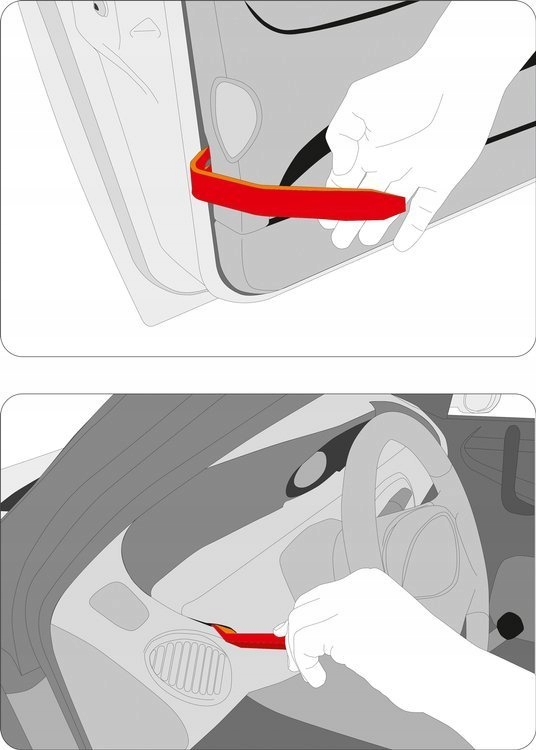 27 шт. з різними формами і вигинамиспеціальні профілі дозволяють використовувати важелі при демонтажі оббивних затискачіввиготовлені із загартованого нейлону не дряпають оббивку або лаковані елементи в практичному чохлі