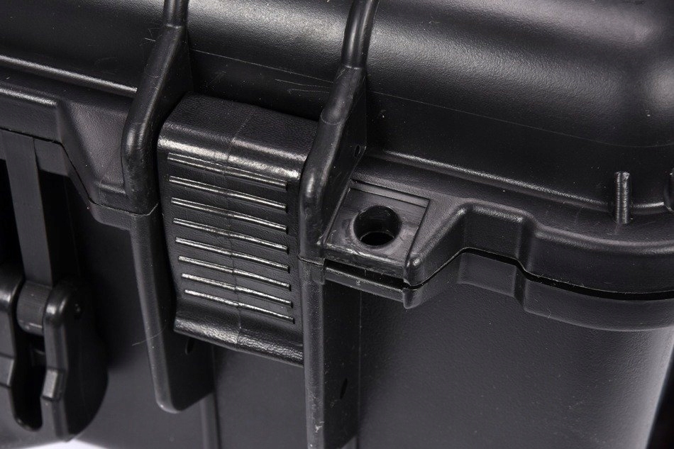 внутрішня частина валізи заповнена попередньо вирізаною губкою, підготовленою для самостійного моделювання заглиблень під конкретні продукти, наприклад інструменти, фотографічне обладнання або вимірювальне обладнання.