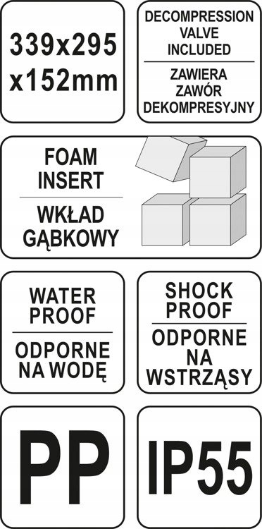 внутрішня частина валізи заповнена попередньо вирізаною губкою, підготовленою для самостійного моделювання заглиблень під конкретні продукти, наприклад інструменти, фотографічне обладнання або вимірювальне обладнання.