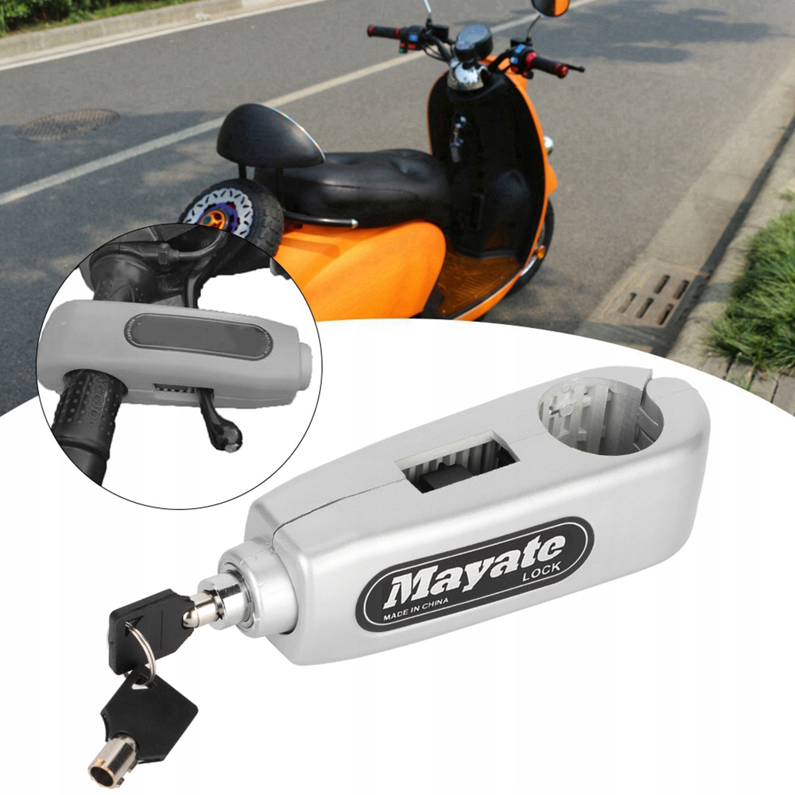 Універсальне мотоциклетне кермо. Ручка-замок для гальм. Захист від крадіжки (срібний)