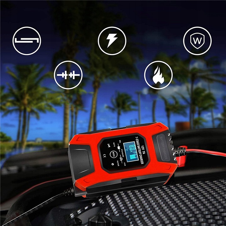 7 ампер зарядний пристрій забезпечує повну зарядку акумулятора автомобіля за менший час.