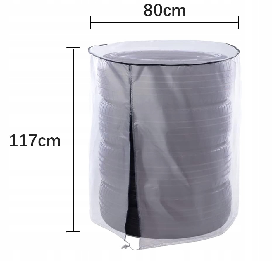 Чохол для шин доступний у 2 розмірах, Ø 72 см x висота 117 см, можна використовується для шин розміром 14-18 дюймів. Ø 80 см x висота 117 см можна використовувати для шин розміром 18-22 дюйми. Щоб полегшити монтаж шини, спочатку виміряйте діаметр і ширину шини.