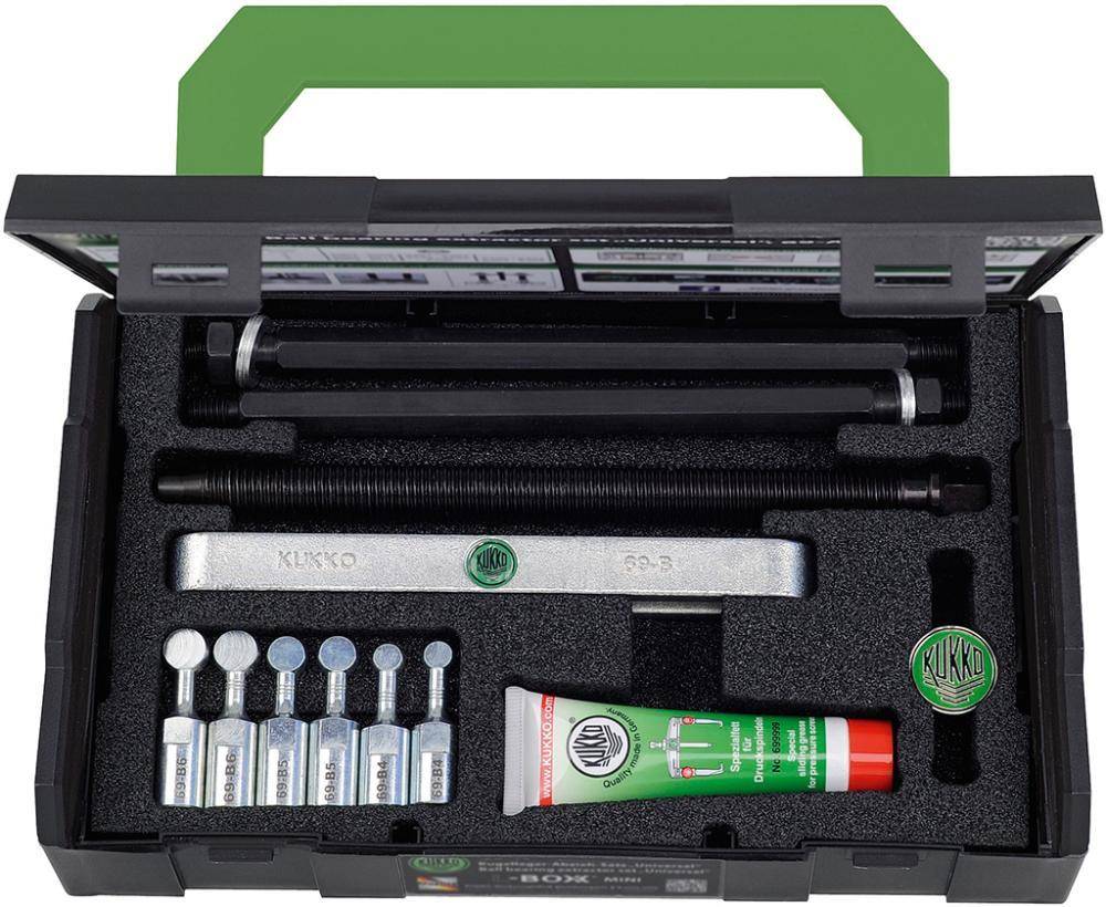 виконання: спеціальна форма забезпечує точне вбудовування підшипникових адаптерів в шарикопідшипник і рівномірне витягування внутрішнього і зовнішнього кільця підшипника. Доставка в коробці L-Boxx MINI.