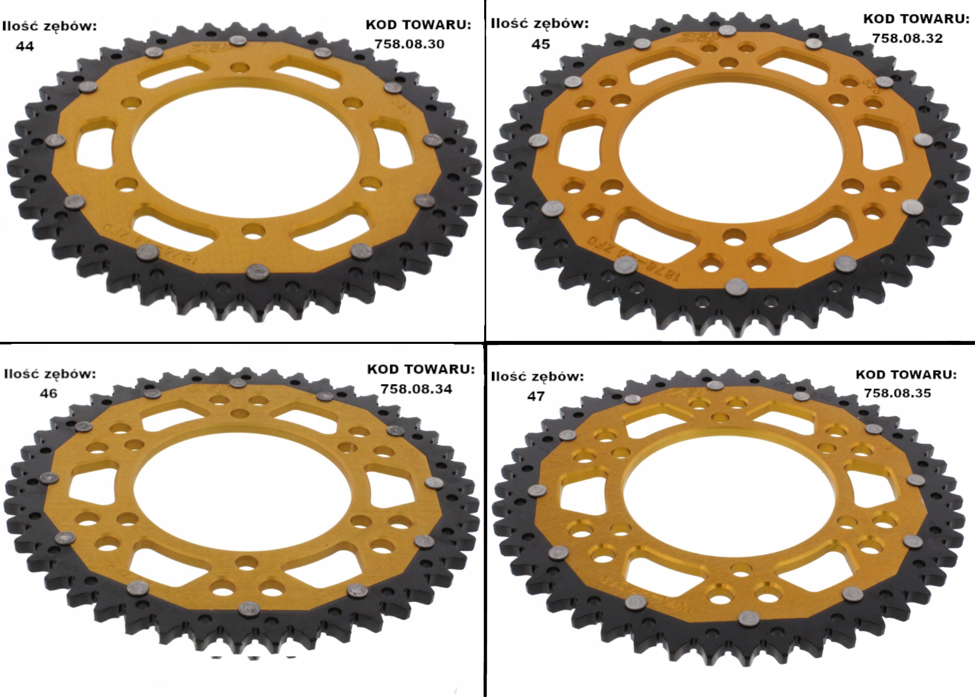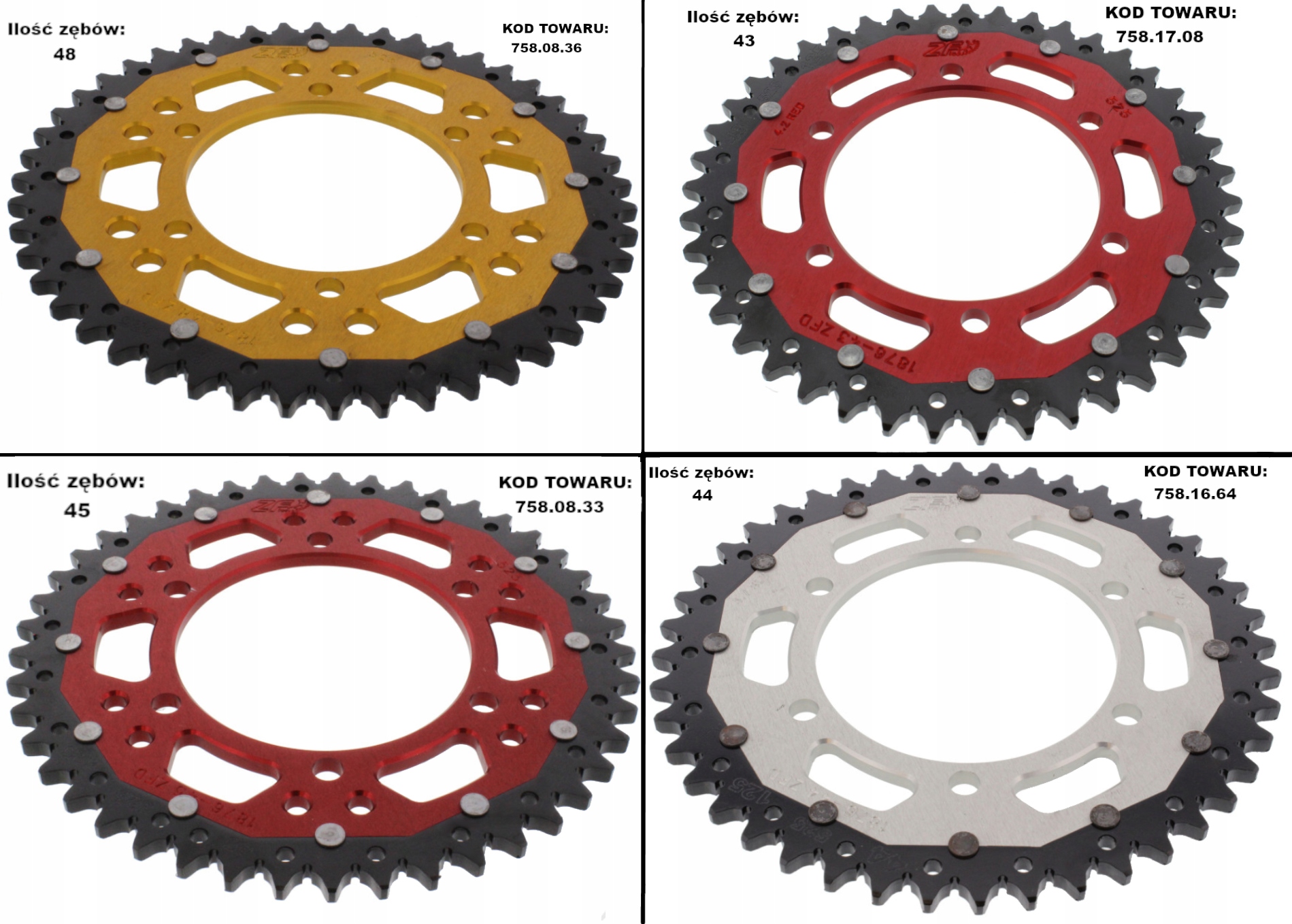 подвійна Зірочка ZF - це продукт вищого класу. Подвійна Технологія у виробництві зірочок для мотоциклів відома вже багато років. Під час їзди на мотоциклі в першу чергу зношується область зубів зірочки. Тому для зниження ваги зубчастої рейки місце кріплення зубчастої рейки було фрезеровано з стійкого до деформації авіаційного дюралюмінію, а зубчастий вінок-зі спеціальної сталі з високою міцністю на стирання. Ефект: 50% ваги сталевої зірочки і 3 рази довший термін служби в порівнянні з зубчастими колесами, повністю виготовленими з алюмінію.