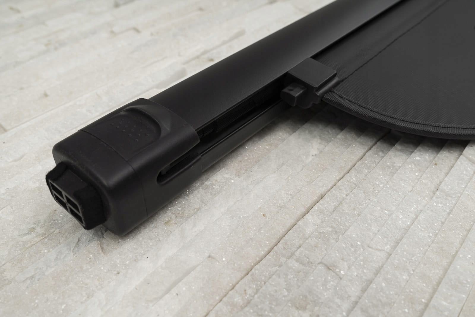 міцна касета і алюмінієва пластина забезпечують довговічність конструкції і зручність використання жалюзі. Касета була розроблена таким чином, щоб забезпечити стабільне кріплення в оригінальних заводських місцях установки за задніми сидіннями. е>