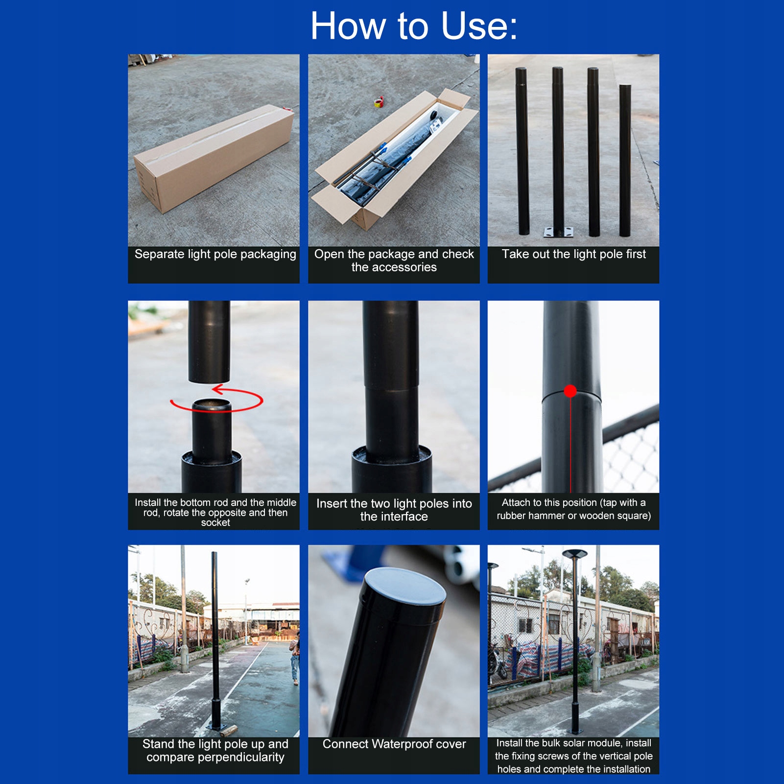 5. Широкое применение: фонари подходят для различных стилей освещения или других проектов, таких как садовое освещение, различные уличные фонари, лампы для камер и т. д., но поляки солнечных фонарей в основном используются для установки солнечных уличных фонарей
