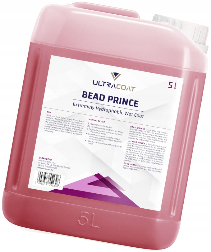 ULTRACOAT BEAD PRINCE 5L Быстрое и легкое гидрофобное покрытие SiO2 Wet Coat