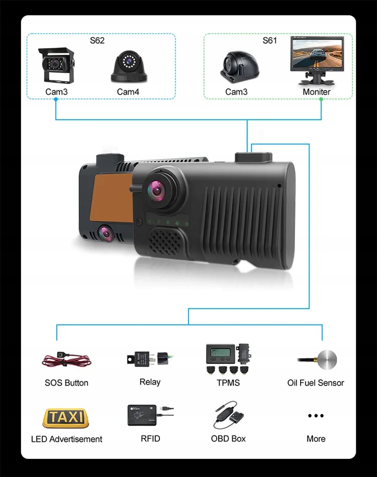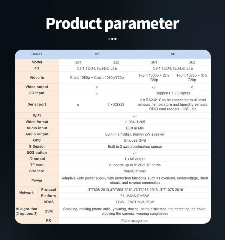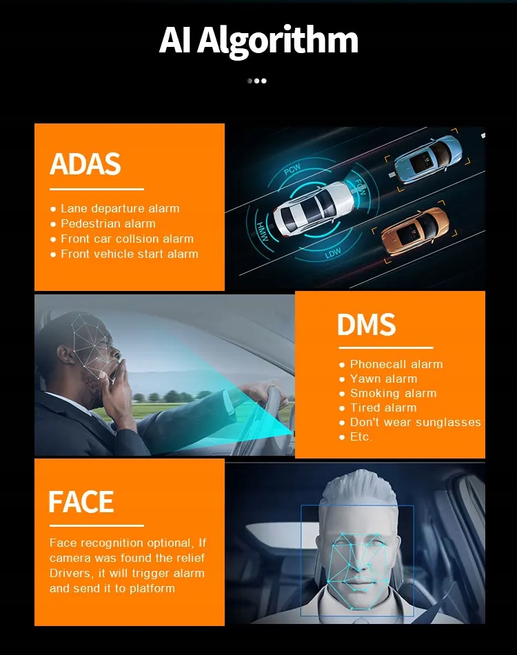 Функция: НОЧНОЕ ВИДЕНИЕ, Пульт дистанционного управления, G-сенсор, Циклическая запись, Встроенный Wi-Fi, Управление через приложение, Голосовое взаимодействие, Встроенный в GPS, ОС Android, SDK, ADAS, DMS, распознавании лиц, кнопке SOS