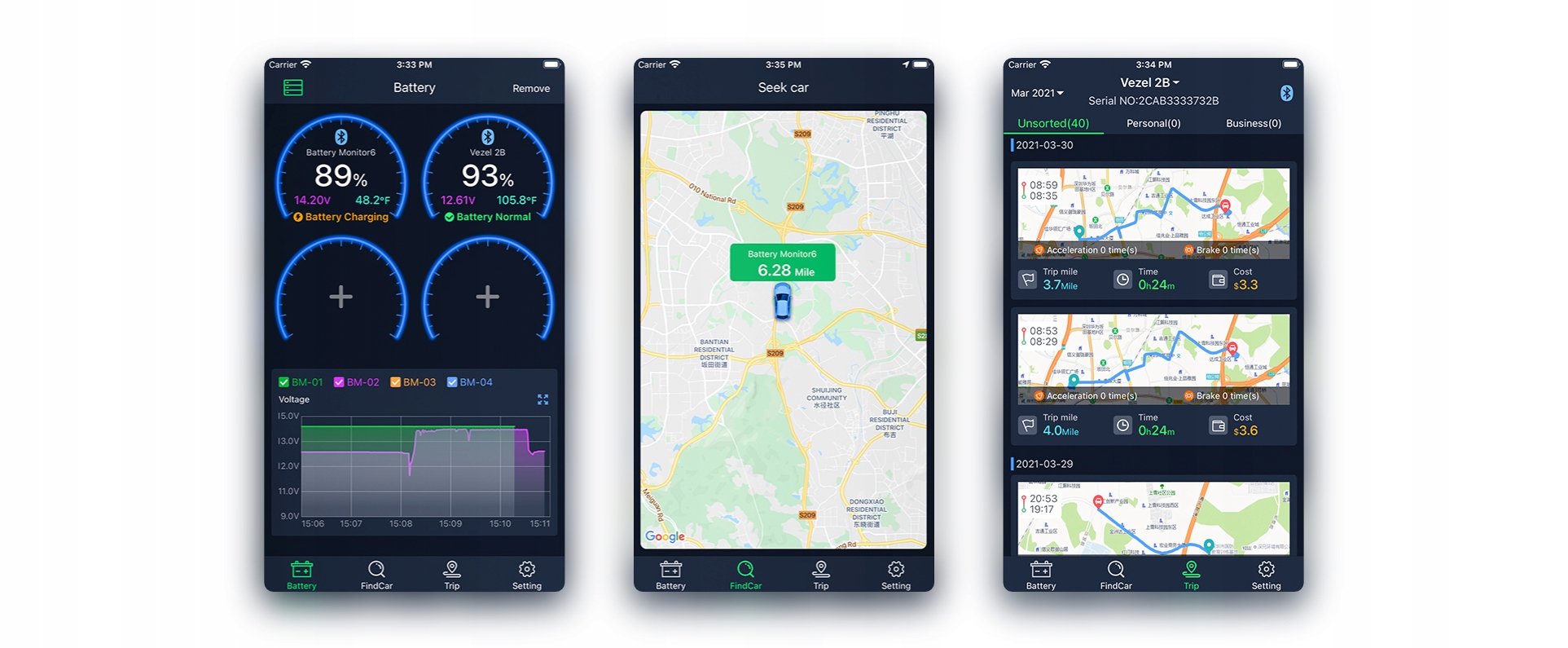 приложение позволяет сопрягать с четырьмя мониторами - если у вас есть несколько частных автомобилей или мини-парк компании-вы можете управлять параметрами каждого автомобиля удобно из одного места!