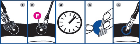 5) приклеить пластырь к подготовленной поверхности и плотно, начиная от центра к внешней стороне, прижать роликом до лат.п>