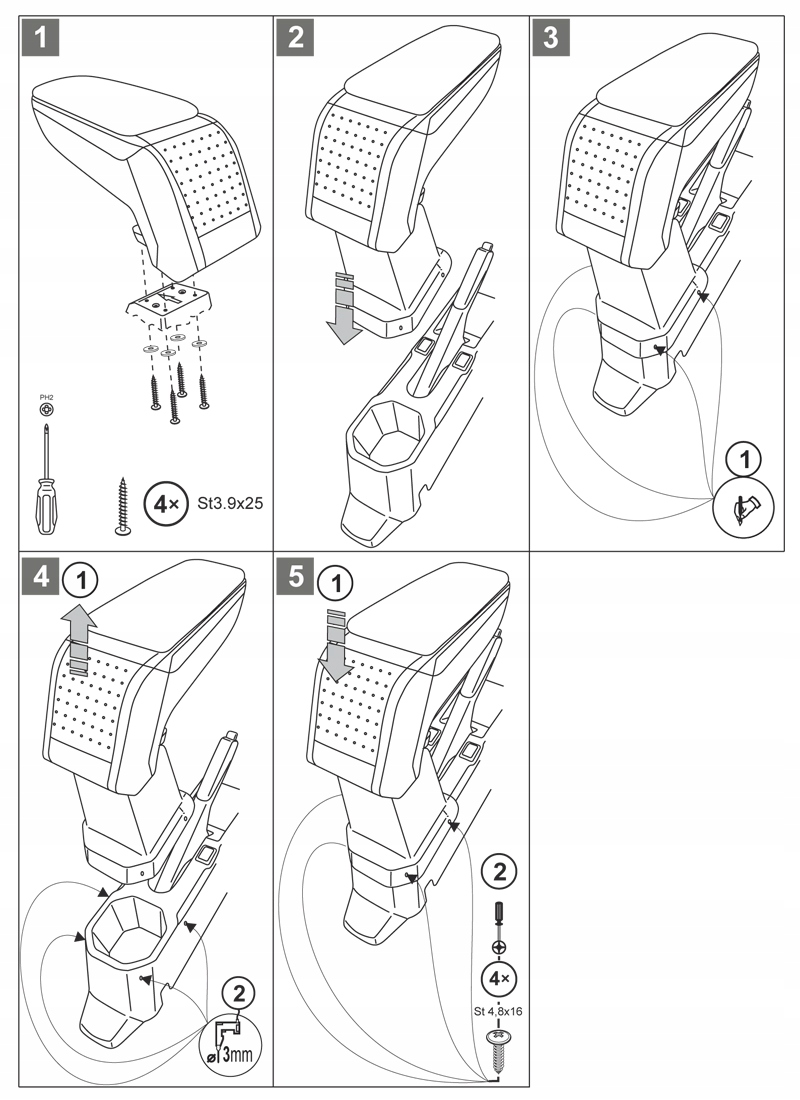 монтажное оборудование доработано технологами в мельчайших деталях, благодаря чему подлокотник будет идеально вписываться в ваш автомобиль, как заводской. Сборка очень проста и включает в себя привинчивание подлокотника вместе с адаптером к центральному туннелю с помощью винтов. В комплект поставки входят руководство по монтажу (также доступно в электронном виде) и крепежные винты. Конструкция обеспечивает мгновенную самостоятельную сборку путем нанесения на центральную консоль и затягивания винтов. После установки подлокотник полностью стабилен и выглядит очень эстетично.п>