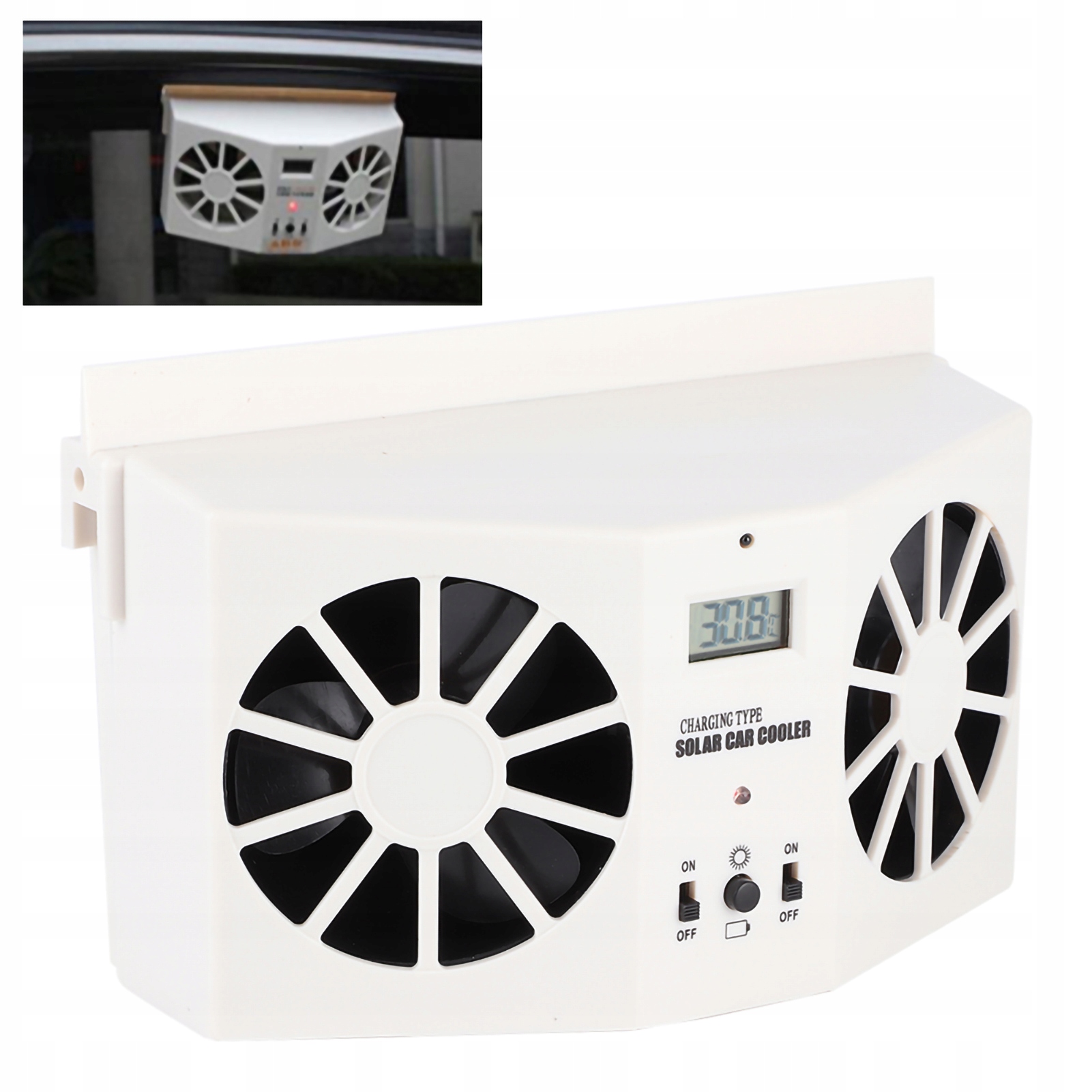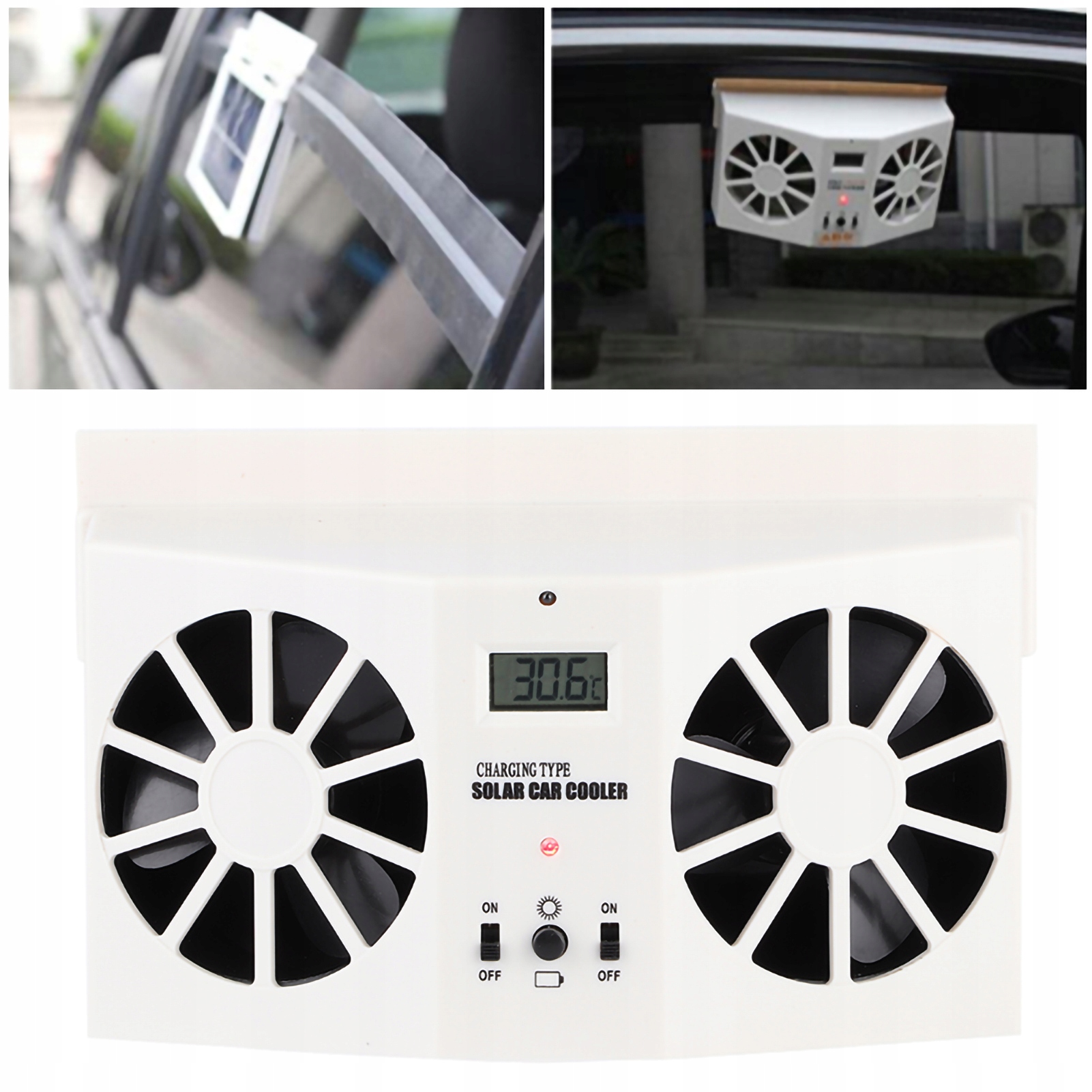 4. Повесьте вентиляционное отверстие на стекло двери автомобиля, установите направление солнечной панели на солнце, вставьте резину, чтобы соединить окно и вентилятор. не повредит стекло автомобиля.