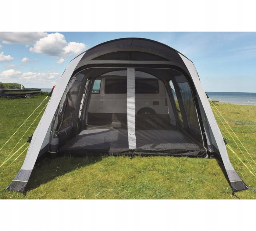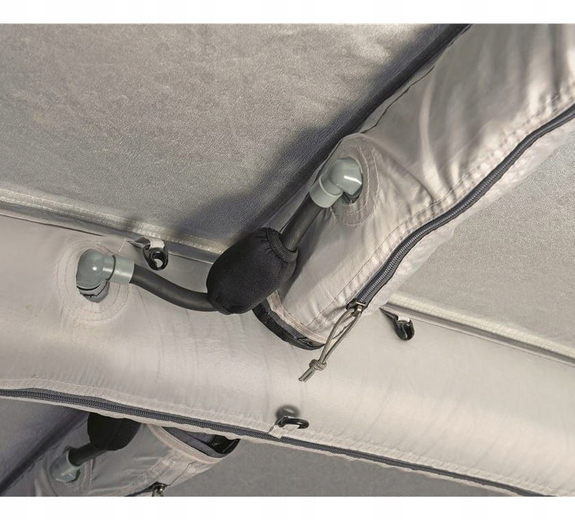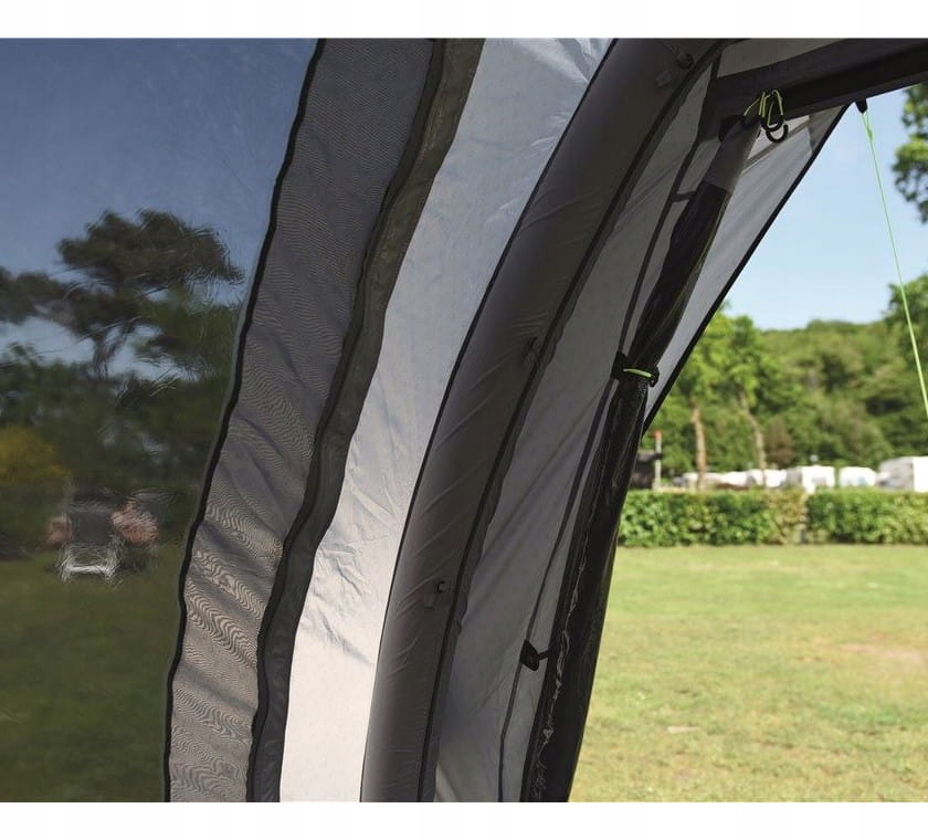 как и классические палатки датского бренда, этот использует конструкцию воздушных камер Integrated Advanced Air System вместо классических оголовьев. Вы заполните их пространство с помощью насоса, входящего в комплект, чтобы вся палатка приобрела правильную форму и стабильность. Такое решение приводит к тому, что конструкция намного лучше переносит даже более сильные порывы ветра, эффективно смягчая их давление. Эта модель благодаря используемой здесь технологии Wind Stabilizer System имеет обозначение Force 9, что позволяет выдерживать ветер до 9 градусов по шкале Бофорта. Оголовье из стали и алюминия использовалось для крепления навесов над вестибюлем и соединения палатки с автомобилем. Все это поддерживается системой вытяжных тросов из светоотражающего материала, поэтому они будут лучше видны после наступления темноты, что облегчит вам случайное спотыкание о них. На боковых стенках этой модели установлены вентиляционные отверстия, обеспечивающие комфортную циркуляцию воздуха внутри. Они также имеют небольшой навес, защищающий от проникновения дождя.п>