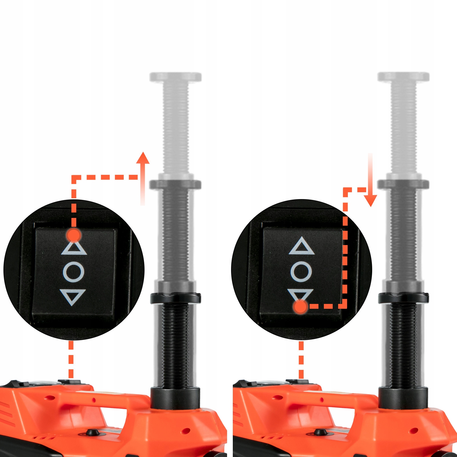 【Jack CAPACITY-5.0 T/11023lb】 - рабочая емкость может достигать до 5.0 T (11023lb) в качестве гнезда. С автомобильной розеткой 12V, стержнем низкого давления, комплектом для спортивного автомобиля. Оснащен двойным контроллером двигателя, работает независимо и эффективно.
