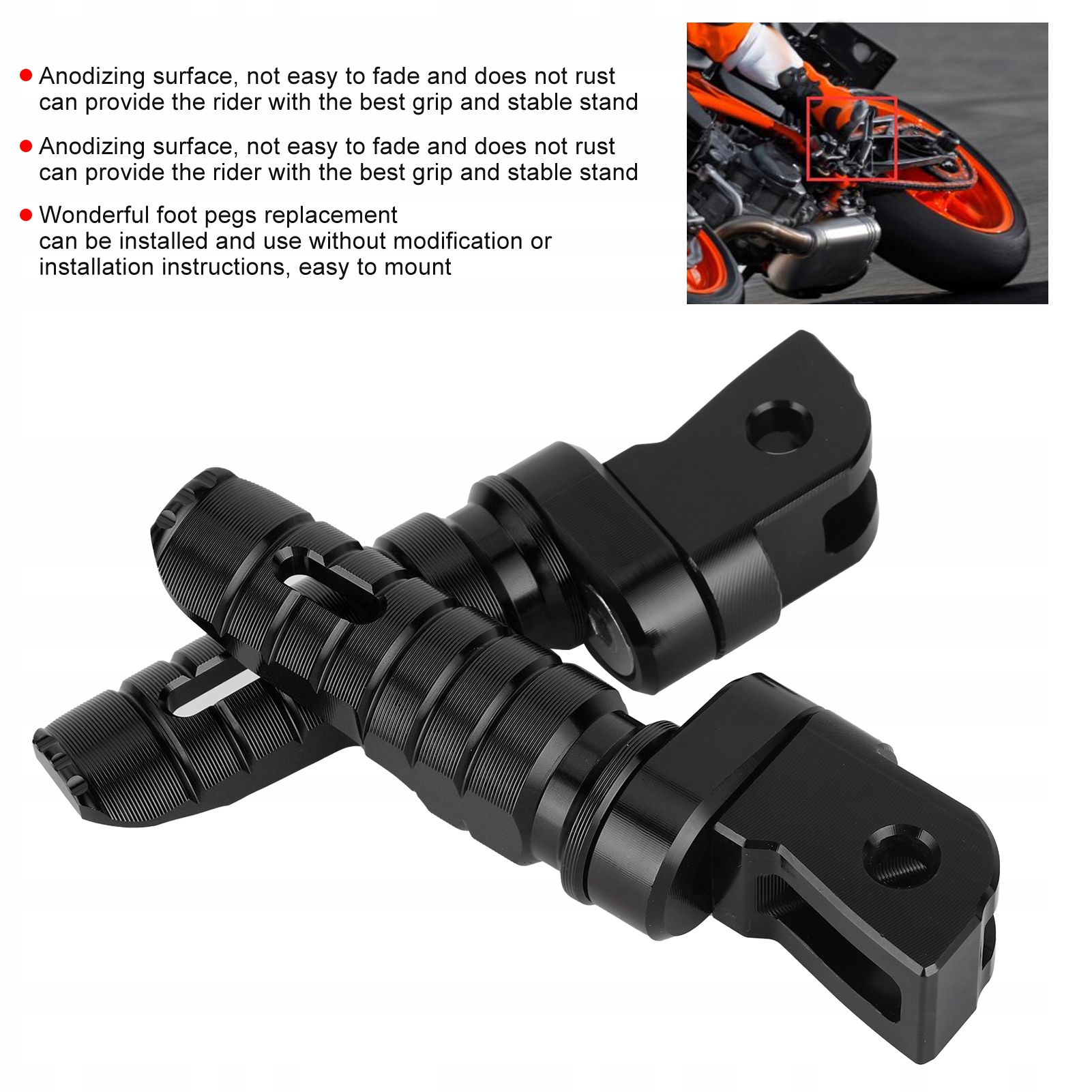 1.Специально разработанная замена передних подножек, может отремонтировать или заменить оригинальные поврежденные или изношенные. 2. Складские подножки с удобным и стильным дизайном могут придать вашему мотоциклу уникальный вид. 3. Изысканная обработка с ЧПУ, использует отличную технологию, может обеспечить точную посадку. 4.Анодированная обработка поверхности, хорошо сохраняет цвет и устойчива к ржавчине, долговечна и долговечна, со стабильной производительностью. 5. Его можно установить и использовать без модификации или инструкции по установке, простая установка.п>