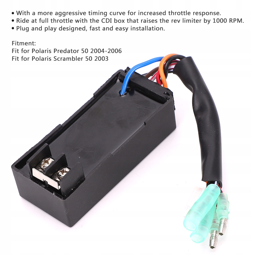 1. Усовершенствованная технология обеспечивает более агрессивную кривую фаз газораспределения, что увеличивает отклик дроссельной заслонки. 2. Дайте полный газ с нашей специальной трансмиссией CDI, которая поднимает ограничитель оборотов на 1000 об/мин. 3. Быстрая и простая установка благодаря специально разработанной и входящей в комплект диэлектрической смазке разъема Plug and Play. 4. Замена номера оригинального оборудования для справки: 0451021, непосредственно замените старый. 5. Изготовлен из высококачественного АБС-материала, обеспечивает отличную стабильность и долговечность.