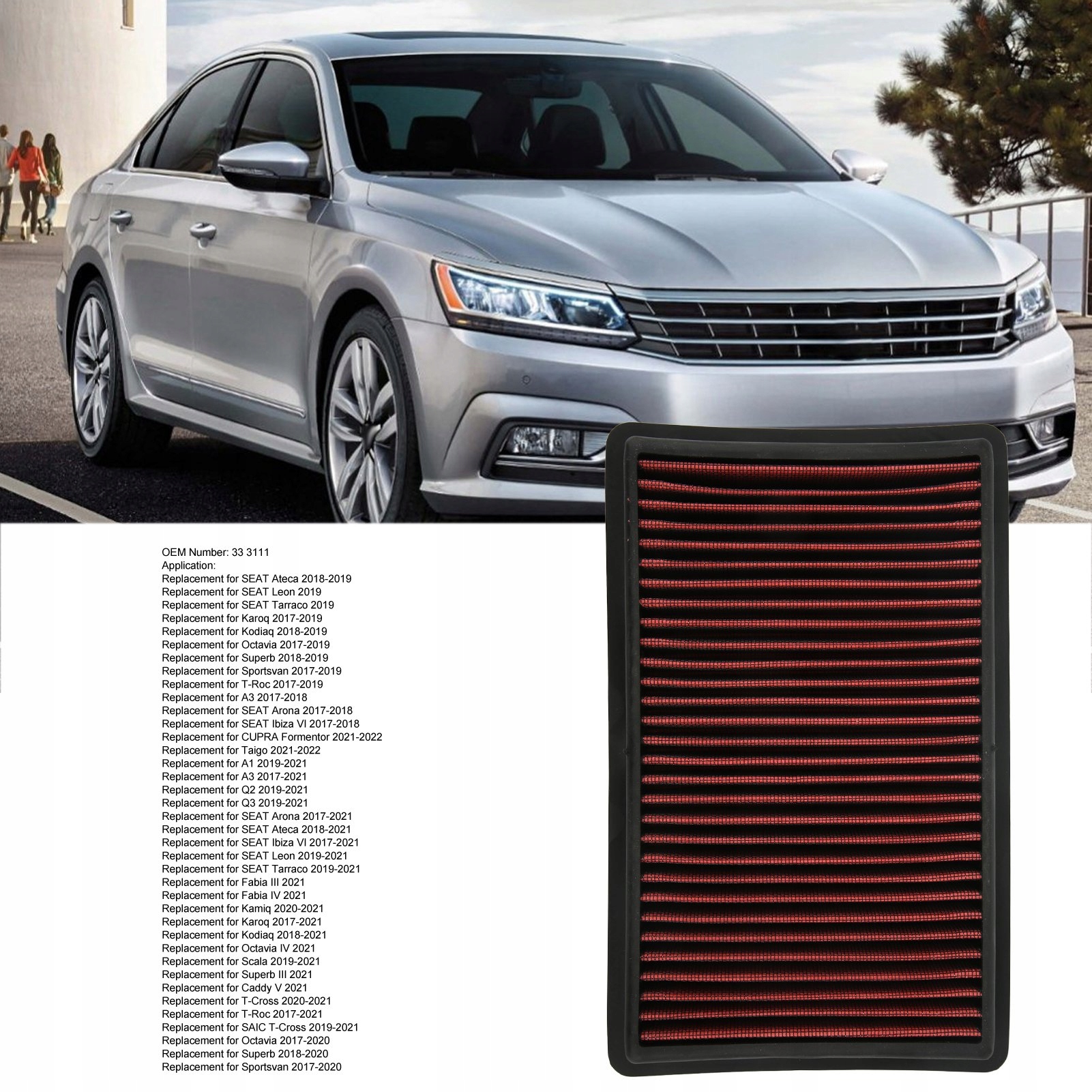 Воздушный фильтр двигателя автомобиля 33 3111 Замена воздушного фильтра двигателя высокой мощности для SEAT Ateca Leon Tarraco