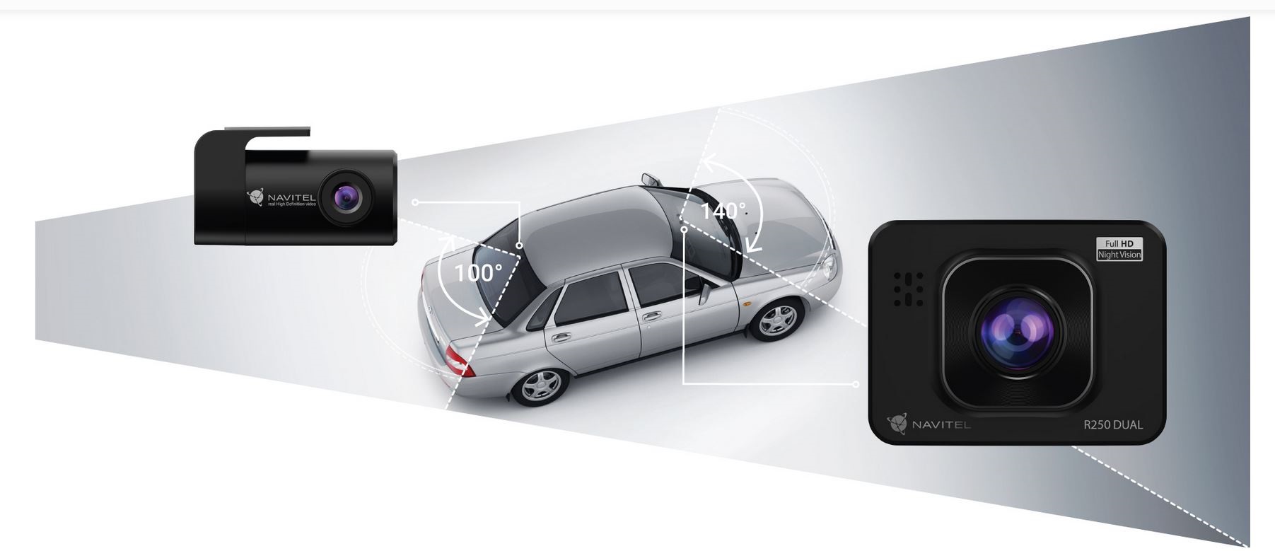 NAVITEL R250 DUAL оснащен датчиком GC2053 (ночного видения), стеклянной оптикой, а угол записи составляет 140°. Видео будет оставаться детализированным во время записи в солнечный день и в условиях низкой освещенности.п>