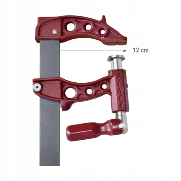 винтовой зажим MAXIPRESS PIHER F имеет двойную резьбу, полностью защищенную от пыли, ударов или сварочных брызг. Кроме того, имеет большую давление, что делает ручку более надежной, чем стандартные сжатия, даже при работе под углом.челюсти отлиты из ковкого чугуна, а стальная направляющая (90 кг./ мм2) очень прочный. Он имеет противоскользящий тормоз на подвижной челюсти, антикоррозийное покрытие и эпоксидные челюсти перед покраской. Отверстие в прижимном механизме позволяет смазывать резьбу, кроме того, увеличивает и обеспечивает более надежное сцепление при работе под углом. Его треугольные зубья и двойная резьба увеличивают как силу, так и скорость подачи. Зажим защищен внешними факторами, т. е. сварочными сколами, грязью бетона, стальными опилками и т.д.