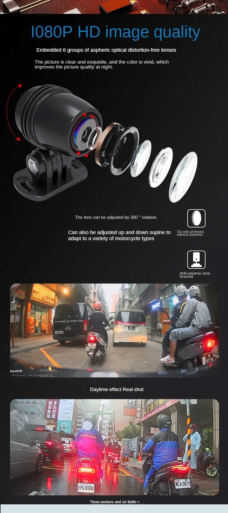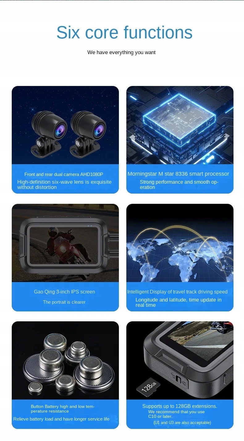 Функции: водонепроницаемый, НОЧНОЕ ВИДЕНИЕ, G-сенсор , РЕЖИМ ПАРКОВКИ, Циклическая запись, Встроенный Wi-Fi, Обнаружение движения, Управление приложениями, Голосовое взаимодействие, Встроенный GPS, Аварийная блокировка