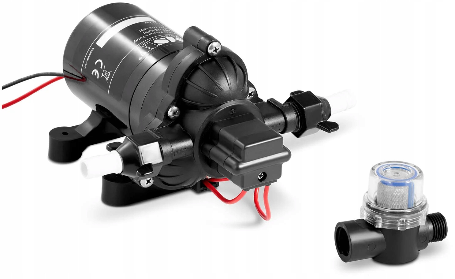 водяной насос высокого давления достигает высокого расхода 11,3 л / мин. Диаметр выпускного отверстия составляет 1/2" (14 MNPT). Это делает его подходящим для многих мест, таких как караваны, яхты и различные системы водоснабжения под давлением. Он перекачивает воду с максимальной температурой 60°C. водяной насос под давлением поддерживает реле давления. Если давление в баке падает до определенного значения, насос включается автоматически.