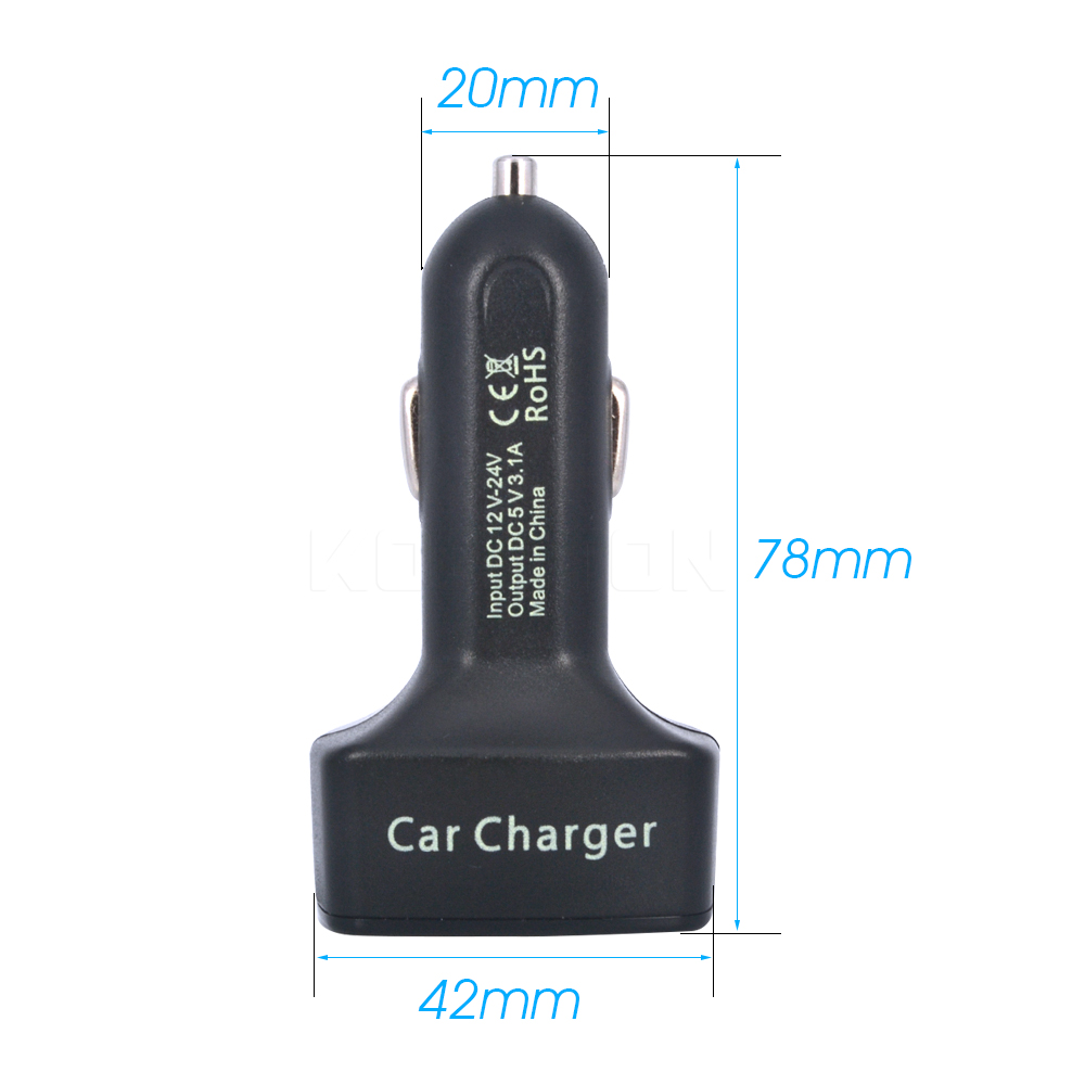 автомобильное Зарядное устройство с двумя USB-портами с суммарной производительностью 3,1 А и напряжением 5 В.