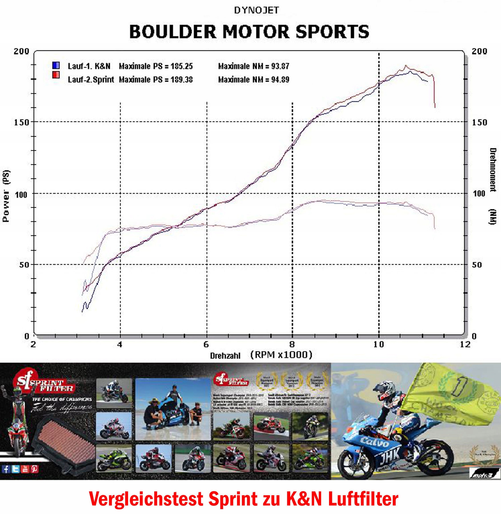 в 2009 году компания начала производство небольшой серии специальных воздушных фильтров для мотоциклов, как хлопковых, так и полиэфирных, и начала техническое сотрудничество с командами Honda Ten Kate и Honda Althea для разработки полиэфирного фильтра. После нескольких этапов разработки, испытаний на срок службы и эффективность фильтрации в условиях проточных и динамометрических испытаний Sprint Filter прекратила производство масляного хлопкового фильтра в 2011 году и признала его устаревшим по сравнению с новым полиэфирным фильтром.п>