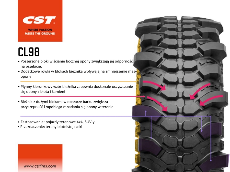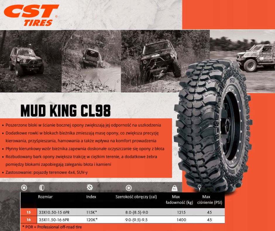 Mud King cl98 обеспечивает все, что вы можете ожидать, и многое другое от экстремальных внедорожных шин. Агрессивный, толстый протектор предназначен для экстремальных условий бездорожья. Особенно подходит для высокопроизводительных автомобилей 4x4, а также внедорожников.