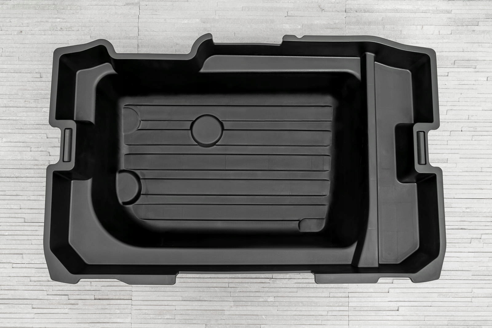 прессованный пластиковый картридж позволяет превратить отсек запасного колеса в практичный органайзер. Картридж позволяет удобно хранить необходимые инструменты и аксессуары. п>