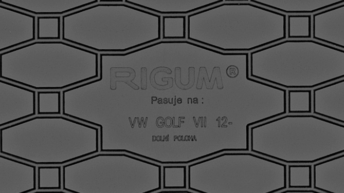 - тиснение: рельефная визуализация модели автомобиля в центральной части коврика и рельефная модель автомобиля с логотипом производителя в нижней части.