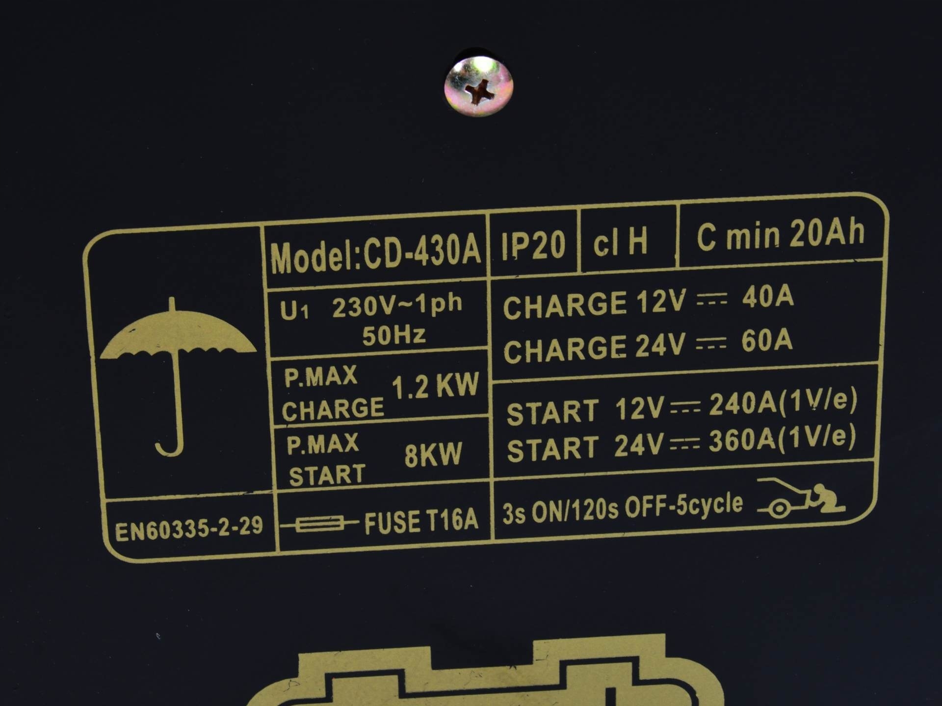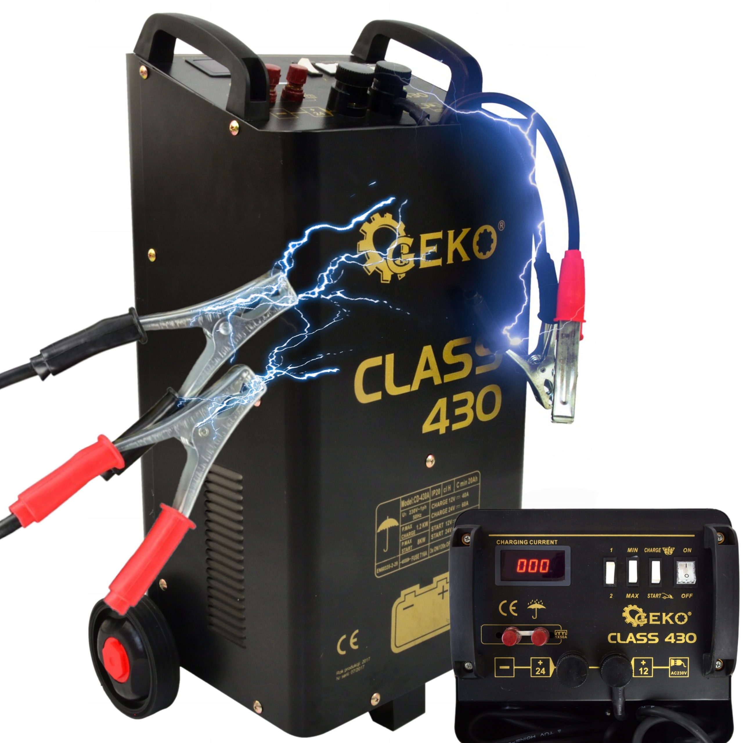Пусковое устройство класса 430, предназначенное для запуска и зарядки свинцово-кислотных аккумуляторов напряжением 12 В или 24 В, используемых, в частности, в грузовых и строительных машинах, а также для запуска двигателей внутреннего сгорания в случае полностью разряженного аккумулятора или очень низкой температуры окружающей среды. Выпрямитель оснащен термовыключателем, отключающим систему при перегреве трансформатора.