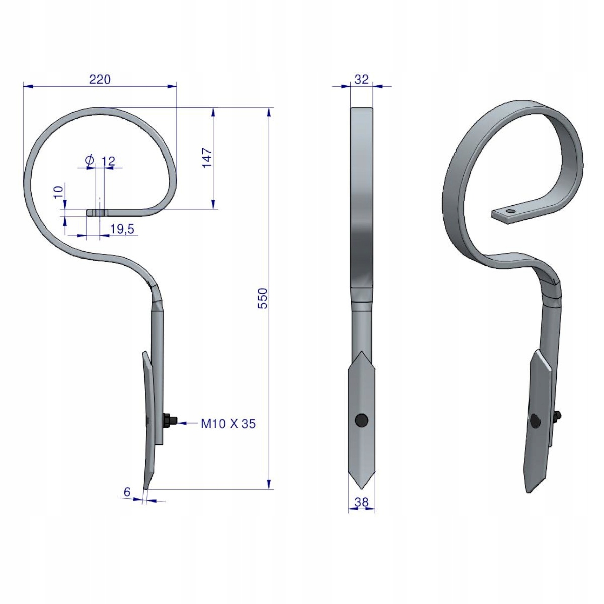 пружинный зуб прямой датский 550 мм 32x10 Варинский