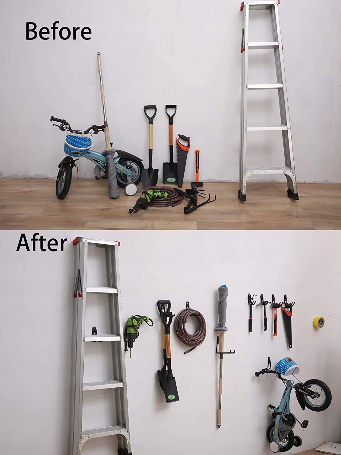 【Экономия места】: вы можете сэкономить больше места в своем гараже с помощью высококачественных гаражных крючков и подвесок. Крючки для инструментов максимально увеличивают пространство и устраняют беспорядок в гараже. Настенный крючок для гаража подходит для оштукатуренных, деревянных и кирпичных стен.
