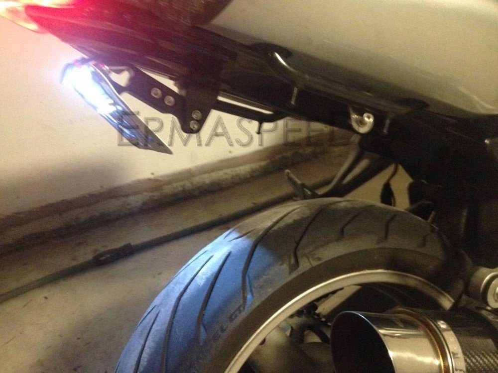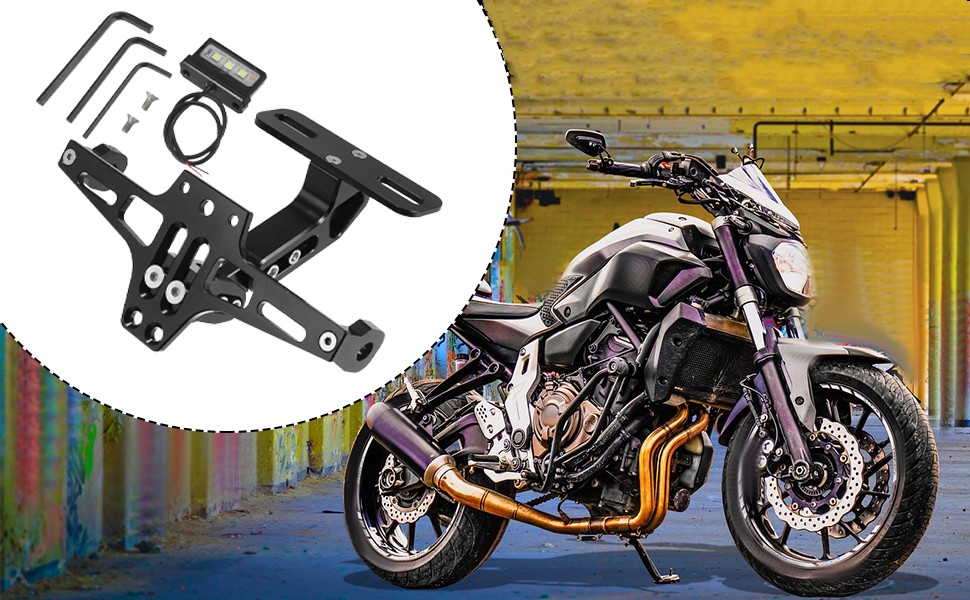 Этот держатель номерного знака мотоцикла оснащен светодиодным освещением номерного знака. Нет необходимости приобретать его отдельно. Он может четко освещать номерной знак при движении в ночное время.