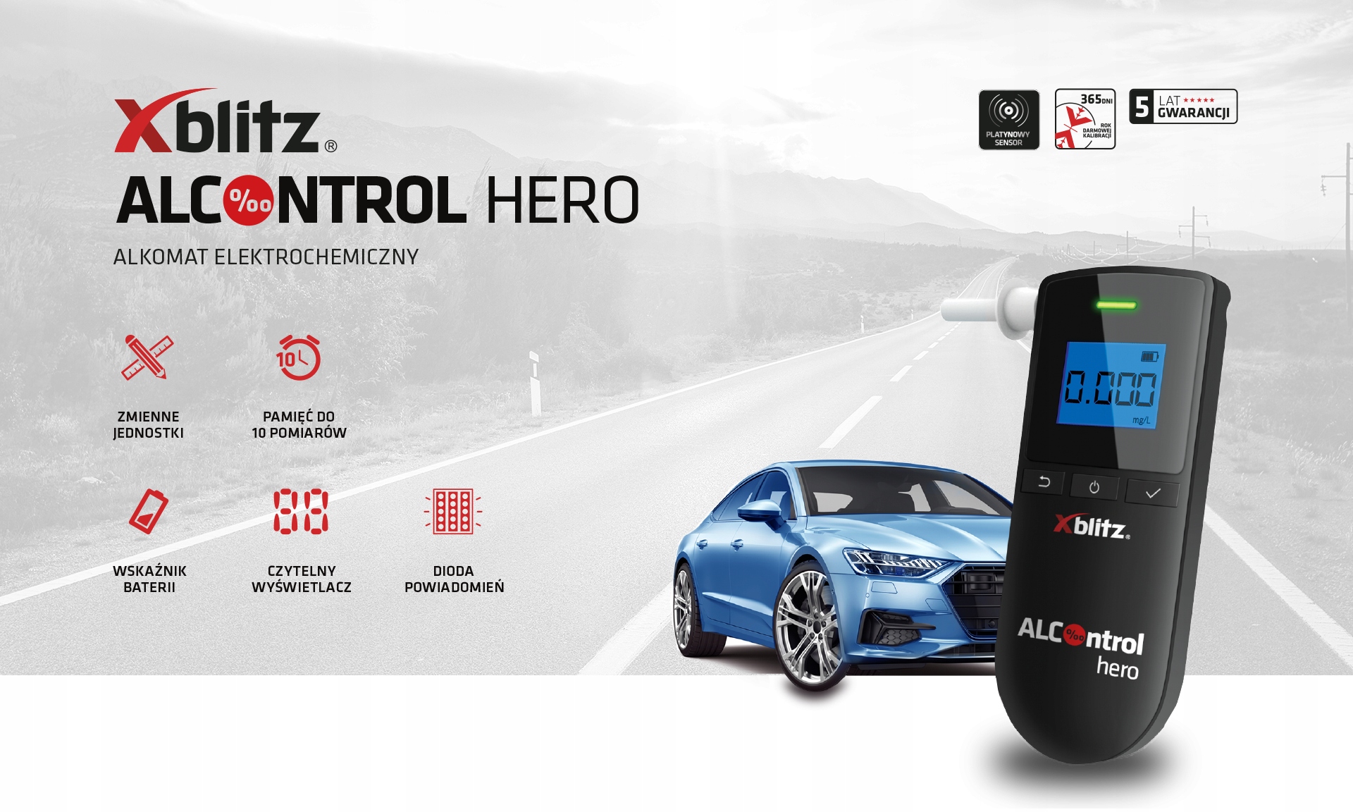 один удар в мундштук электрохимического алкотестера-это все, что вам нужно, чтобы убедиться, что вы в состоянии управлять автомобилем. Как и подобает настоящему герою, Xblitz Hero может спасти вас от серьезной аварии.п>