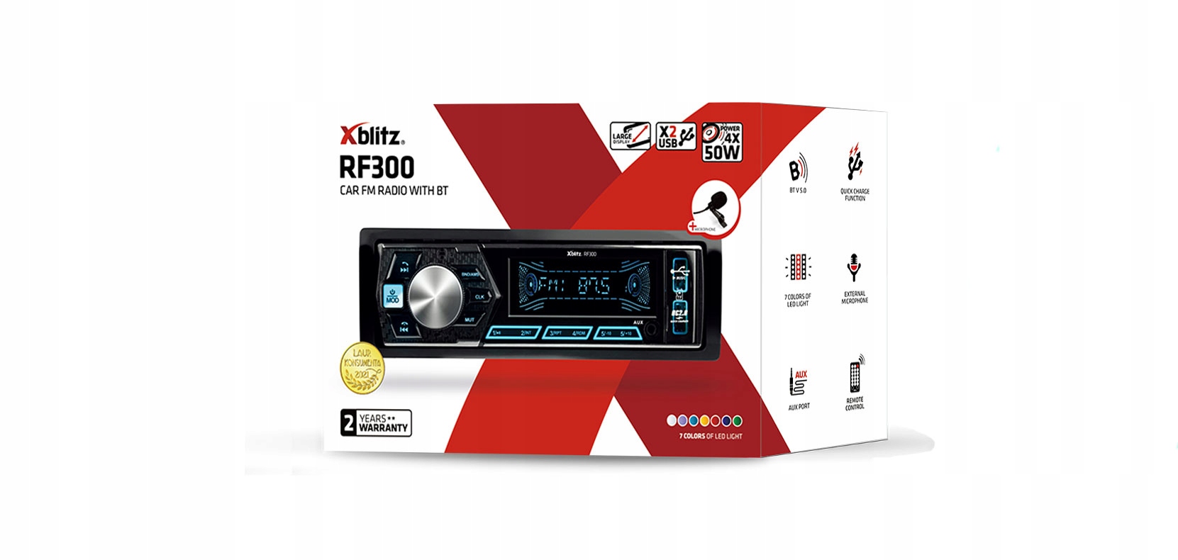 Xblitz RF300 также заботится об эстетике-с семью различными цветами подсветки вы можете адаптировать устройство к декору кабины вашего автомобиля. Вы можете изменить подсветку в любое время, и благодаря ей все кнопки, необходимые для работы радио, также видны ночью. Доступные цвета: белый, фиолетовый, голубой, желтый, красный, синий и зеленый.п>