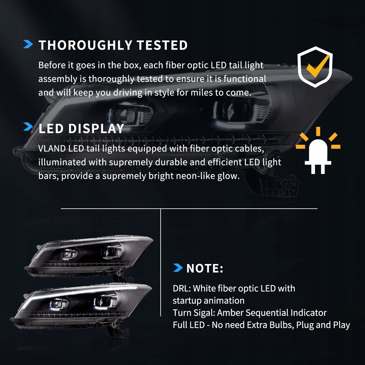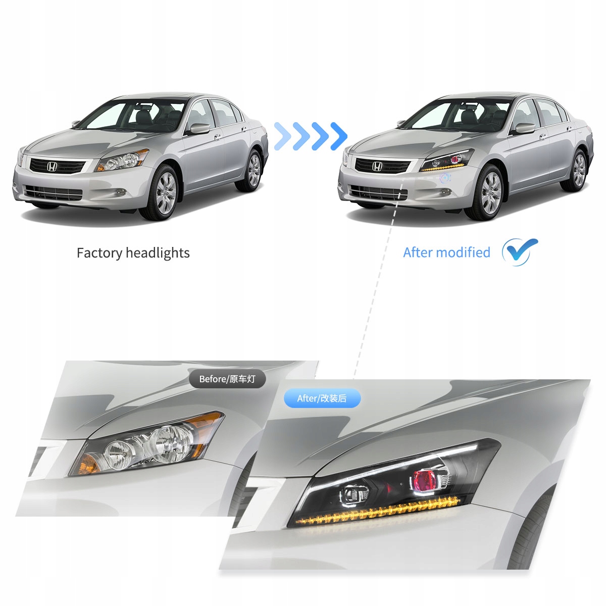 YAA-HD-0145A 150TA0A01, - HONDA ACCORD VIII США ВЕРСИЯ 2008-12 ПЕРЕДНИЕ ФАРЫ СВЕТОДИОДНЫЕ VLAND ДЛЯ ЕВРОПЫ