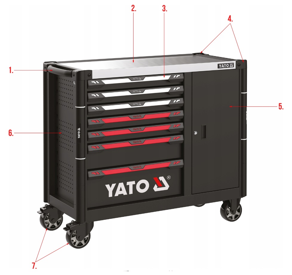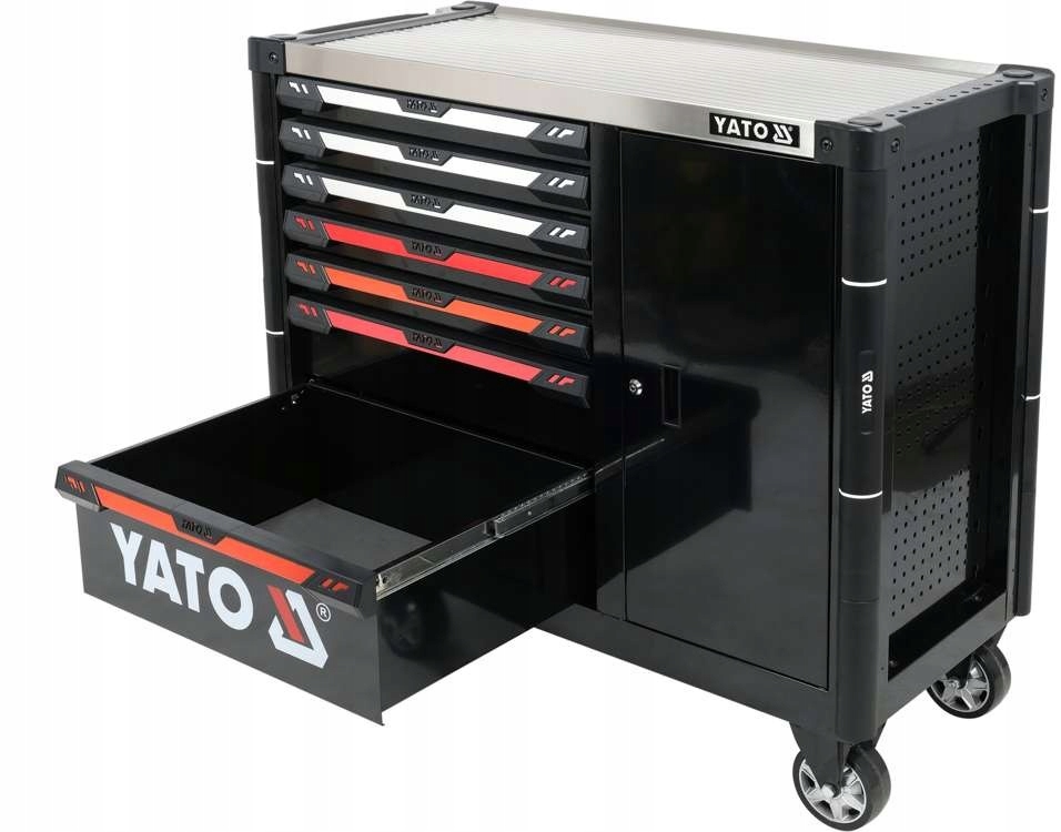 от известной компании YATOновый сервисный шкаф YT-09033 представляет собой уникальную конструкцию, имеющую механизм, позволяющий одновременно открывать более одного ящика. Все ящики работают плавно за счет использования специальных направляющих с подшипниками.все это закрывается центральным замком.