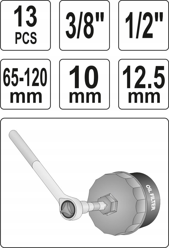 торцевые ключи для масляных фильтров марки YATO. изготовлен из легированной стали CrMo SCM440, раструбная конструкция с поперечным ребром, привод 3/8".
