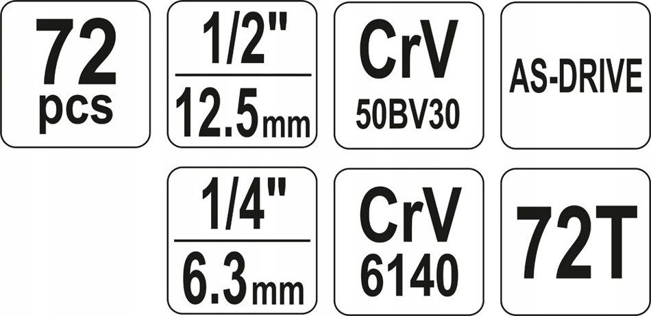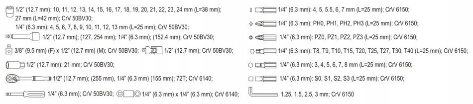 торцевые ключи и привод торцевых головок изготовлены из прочной инструментальной хромованадиевой стали CrV 50bv3.