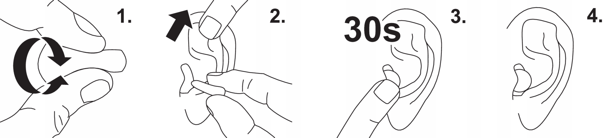 свернув пробку в руках, вы должны сформировать ее в цилиндр, а затем просунуть глубоко в ухо. Вставьте затычку в ушной канал в течение 30 секунд до полного расширения. С помощью пальцев или в зеркале проверьте, вставлена ли заглушка до самого конца. Он должен быть виден или ощущаться только на самом конце пробки.п>