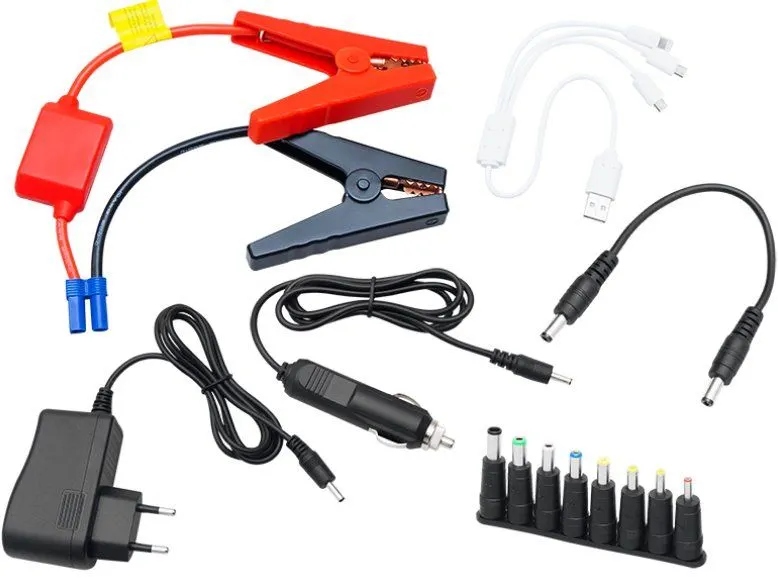 - прилагаемое оборудование: руководство пользователя, кабель питания для телефона, планшета, камеры, MP3/mp4 плеера и других электронных аксессуаров., соединительные кабели, автомобильное зарядное устройство, Зарядное устройство, пусковое устройство, сменные штекеры постоянного тока
