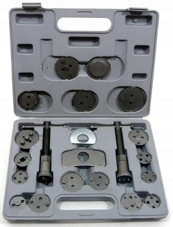 в комплект входят два пресса (правый и левый торсионный), две балки различной формы для запирания пресса о седло суппорта и 17 адаптеров, адаптированных к размеру тормозных поршней, используемых в большинстве легковых автомобилей, выпускаемых на европейском и азиатском рынках.