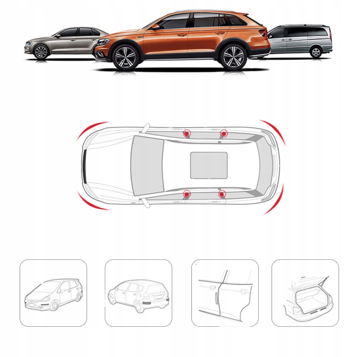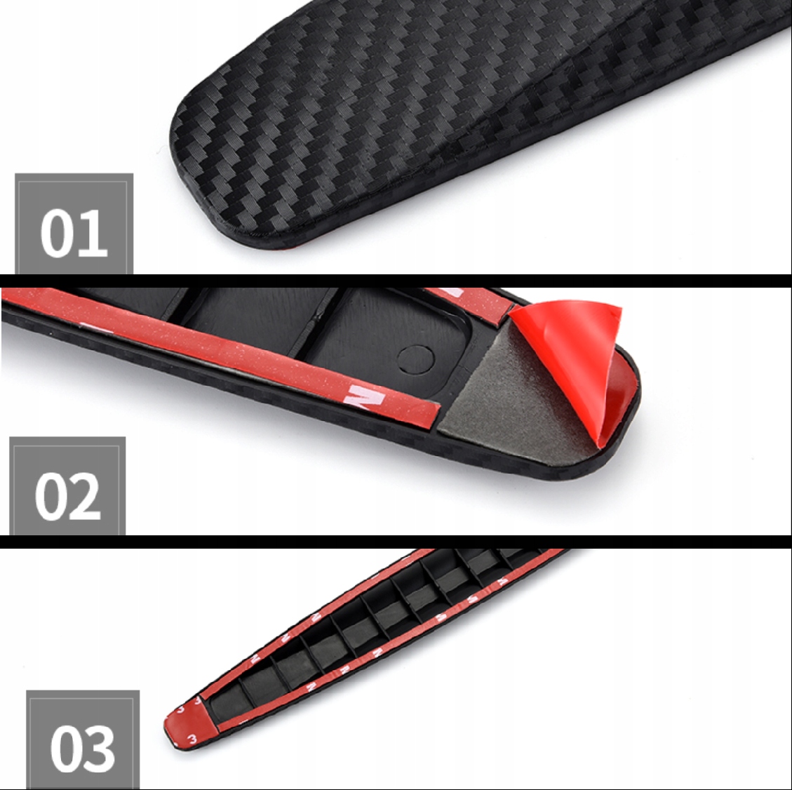 3. Оторвав фиксирующую ленту с задней части изделия, приклейте ее в выбранное место (спереди, сзади или сбоку) автомобиля, а затем плотно прижмите пальцами так, чтобы двойная Двухсторонний клей хорошо прилипает к намеченному месту.