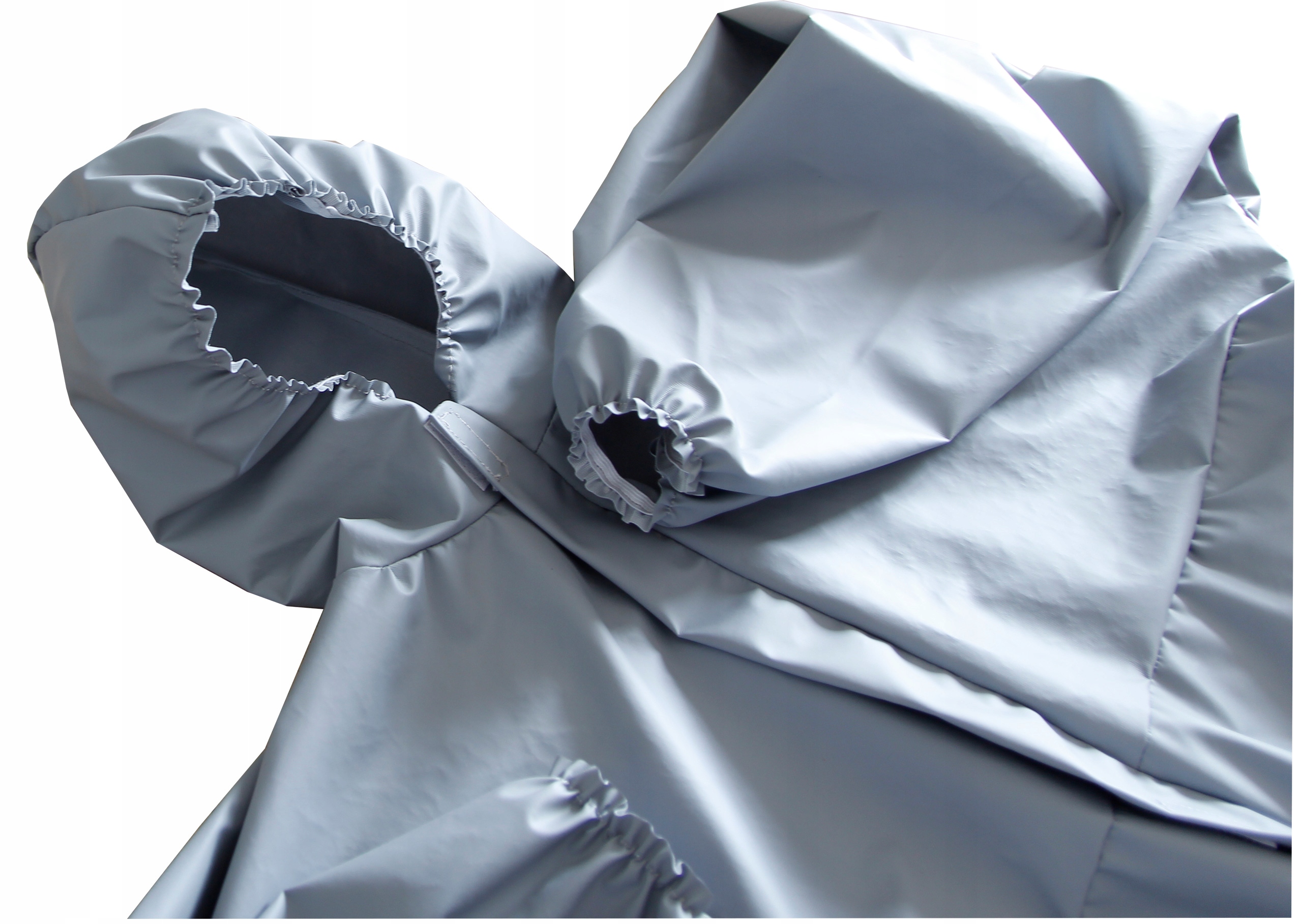 комбинезон имеет крышку на молнии и пришитые резинки на рукавах, штанинах и в капюшоне.п>